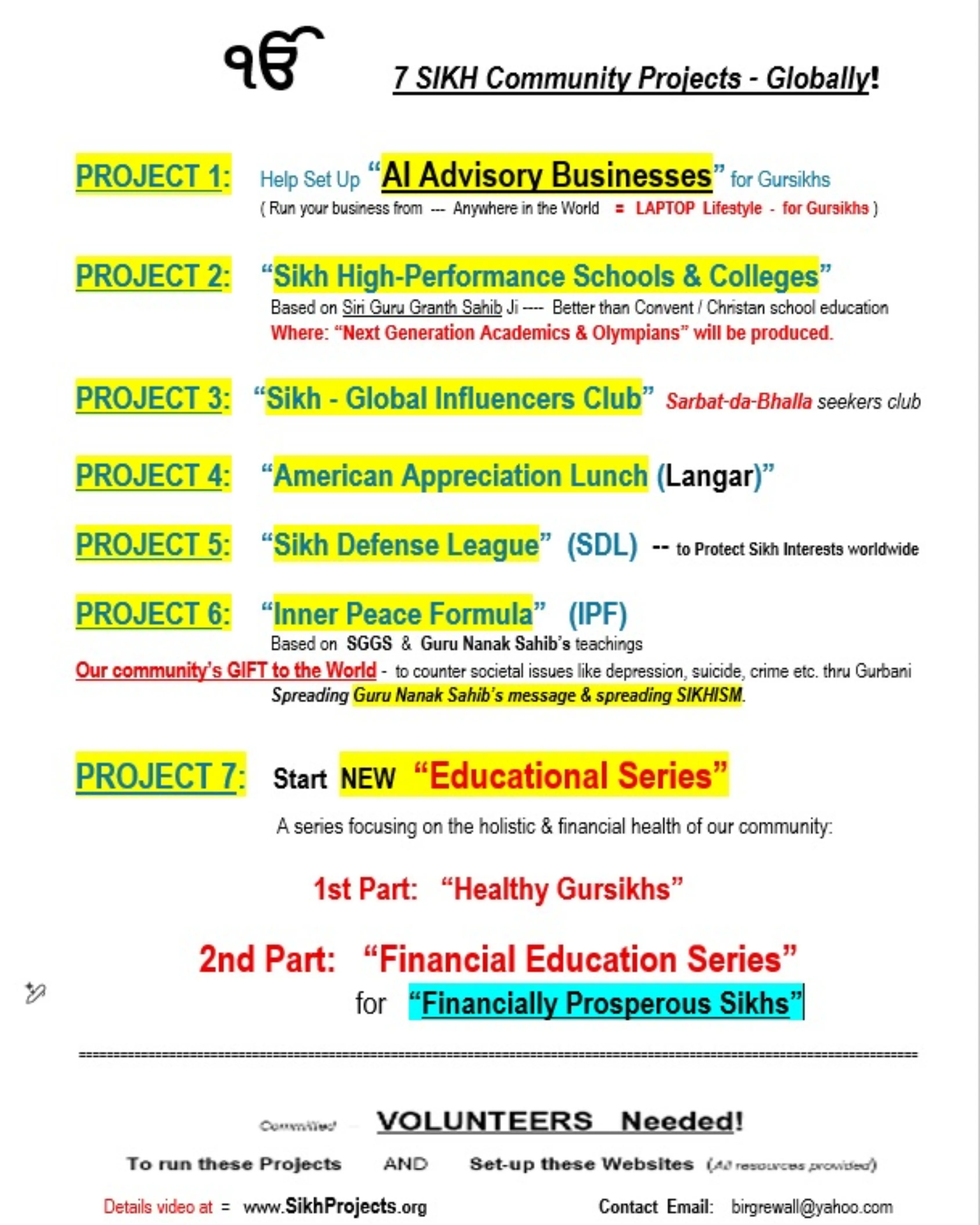 Our initiatives are rooted in the faith and teachings of “Siri Guru Granth Sahib” Ji, open to Sikhs who are committed to these principles.